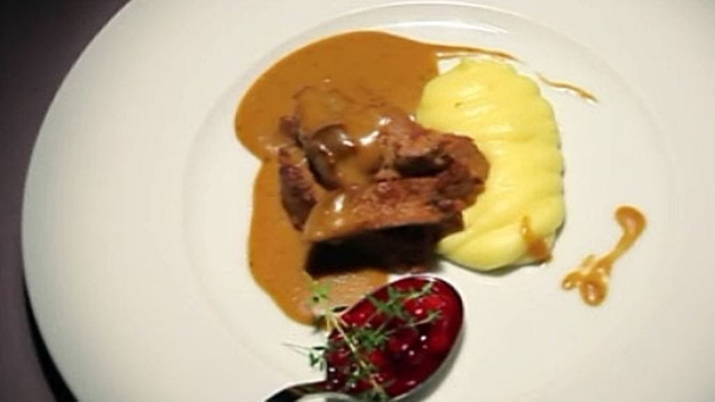 Lisukkeeksi survottuja puolukoita ja perunamuhennosta.