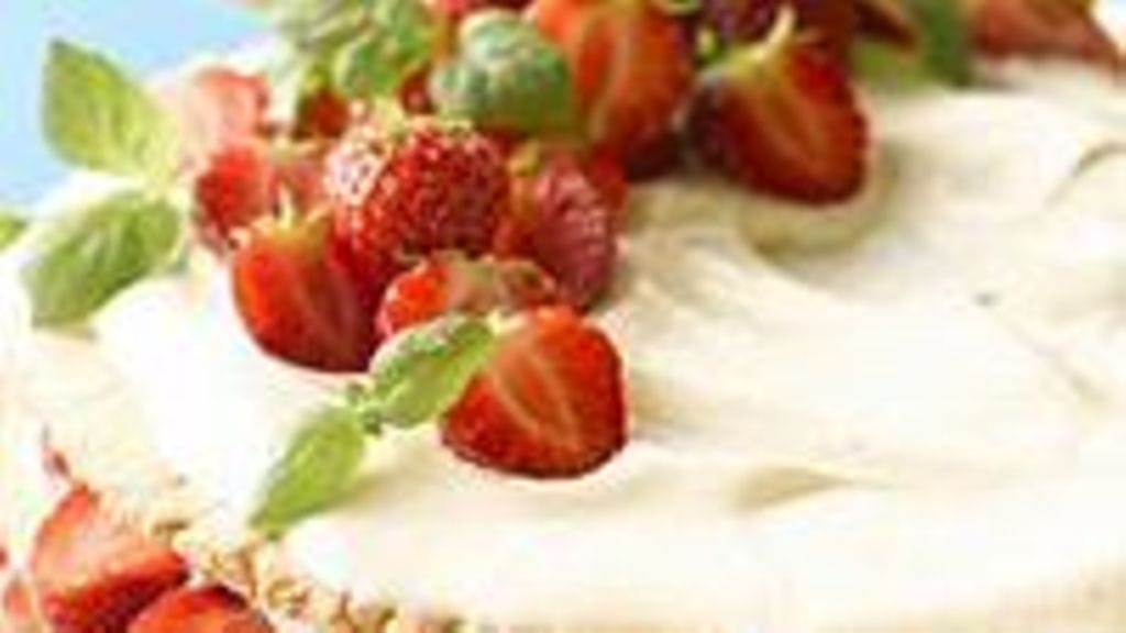 Kokoa kakku tarjottimelle. Kostuta alimmaksi tuleva kakkupohja vaniljasokerilla maustetulla maidolla. Levitä pohjalle mansikkasosetta, marjoja ja puolet rahkaseoksesta. Nosta toinen levy päälle. Kostuta levy ja levitä sen päälle loput rahkaseoksesta. Koristele viipaloiduin mansikoin ja mintunoksin.
