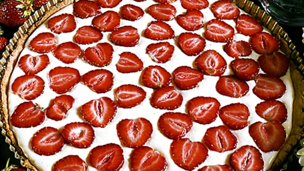 3. Kaulitse taikina ja vuoraa sillä piirasvuoka. Pistele pohja ja kääri ohut foliosuikale reunalle. Paista kuorta uunin keskitasolla noin 20 minuuttia, poista folio 5 minuutin paistamisen jälkeen. Anna pohjan jäähtyä.
