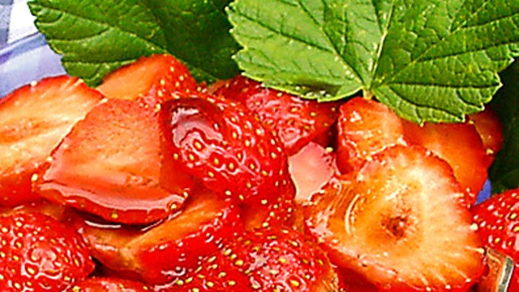 3. Tarjoile mansikat huoneenlämpöisinä muutamalla balsamicohunajatipalla maustettuina. Italialaiset mantelikorput maistuvat mukana.