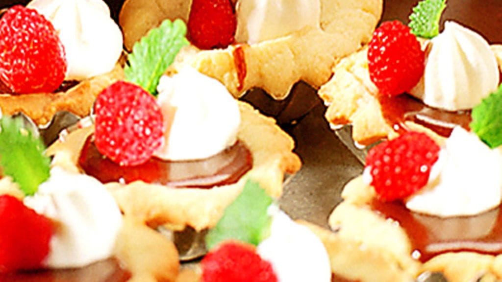 2. Leikkaa taikinarulla ohuiksi viipaleiksi ja painele ne sormilla voideltuihin pieniin metallivuokiin. Paista vuokia 200-asteisessa uunissa 8-10 minuuttia, kunnes ne ovat kullanruskeita. Anna jäähtyä kokonaan.