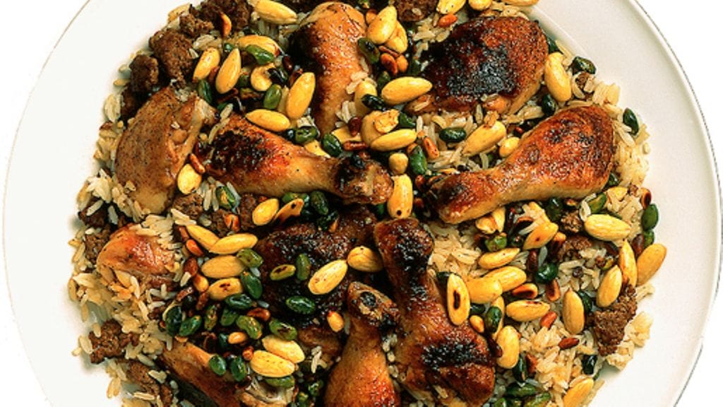 3. Paista mantelit, pistaasit ja pinjansiemenet jäljelle jääneessä voissa. Kumoa pata tarjoiluvadille, ripottele pinnalle mantelit, pistaasit ja pinjansiemenet.