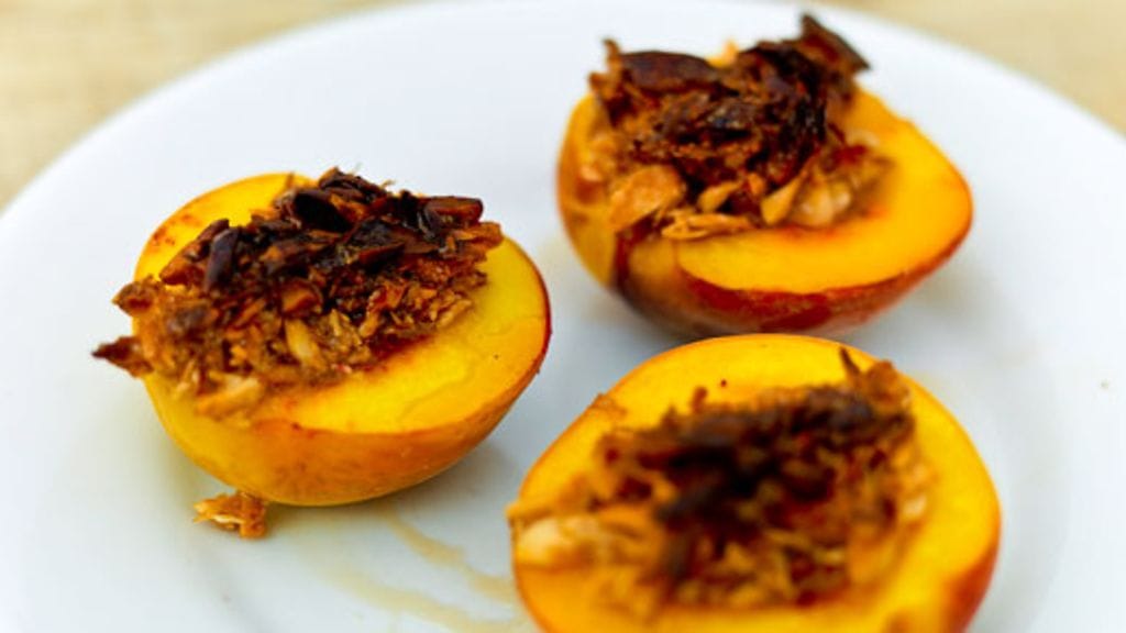 Täytetyt persikat voi tarjoilla myös vanhanajan vanilja tai persikkajäätelön kanssa.