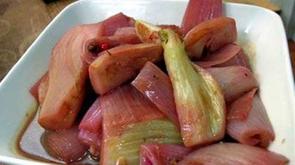 Leikkaa isommat salottisipulit puoleen, pienemmät voi jättää kokonaisiksi. Kuumenna oliiviöljy kasarissa kuumaksi ja ruskista siinä sipulit, kokonaiset valkosipulit ja fenkoli. Lämpö saa olla kovalla, tarkoitus ei ole pehmentää sipuleita vaan antaa niille kaunista väriä. Kun sipulit ovat ruskistuneet kauttaaltaan, lisää kasariin sokeri ja laakerin lehdet. Kun sokeri on karamellisoitunut ja ottanut hiukan väriä, lisää loputkin ainekset suolaa ja pippureita lukuunottamatta. Laita vettä sen verran, että ainekset juuri ja juuri peittyvät. Kiehauta. Anna kiehua noin 8 minuuttia tai kunnes sipulit ovat hieman pehmenneet, mutta kuitenkin napakoita. Kokeile esim. veitsellä tai hammastikulla.