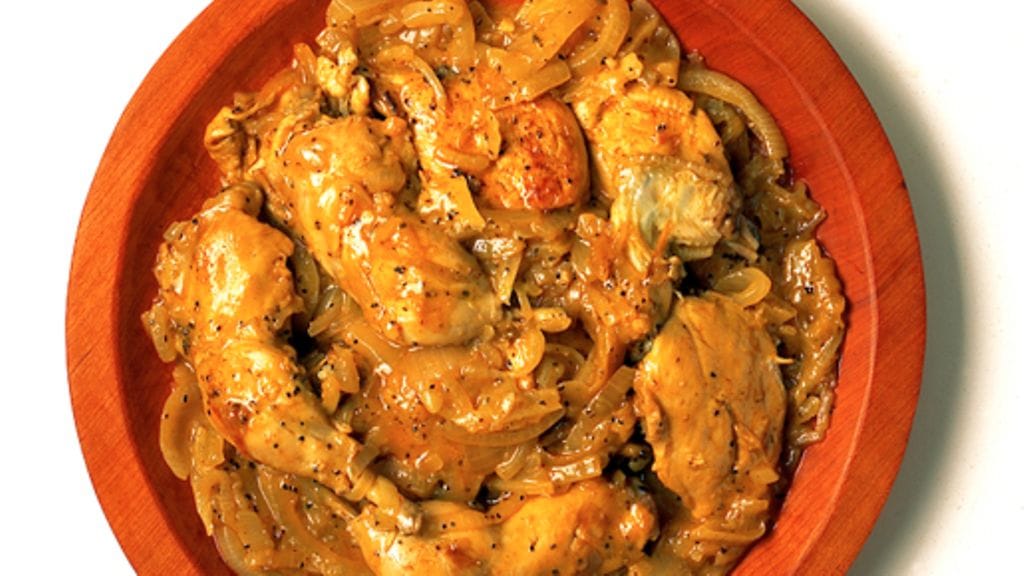 1. Leikkaa broileri 8 osaan ja poista nahka. Kuori ja viipaloi sipuli. Pane broilerinpalat ja sipuli kulhoon. Puolita limetit tai sitruunat ja purista niistä mehu. Sekoita mehuun mustapippuri, cayennenpippuri ja suola. Kaada marinadia broilerinpalojen päälle, peitä kulho ja anna vetäytyä jääkaapissa 3-4 tuntia. Sekoita muutaman kerran.