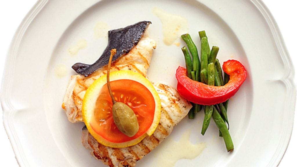3. Grillaa kalaa 4 minuuttia kummaltakin puolelta. Jos palat ovat paksuja, voit jälkikypsyttää niitä 100-asteisessa uunissa 2-4 minuuttia. Tarjoa kala lämpimiltä lautasilta. Koristele annokset sitruuna- ja tomaattiviipaleilla sekä kapriksilla.