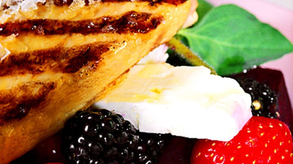 2. Hienonna punasipuli kastiketta varten. Sekoita viinietikka ja oliiviöljy, mausta pippurilla, suolalla ja hienonnetulla sipulilla. Leikkaa punajuuret pieniksi paloiksi ja sekoita kastikkeeseen. Kaada kastike marjojen päälle ja anna maustua 20 minuuttia.