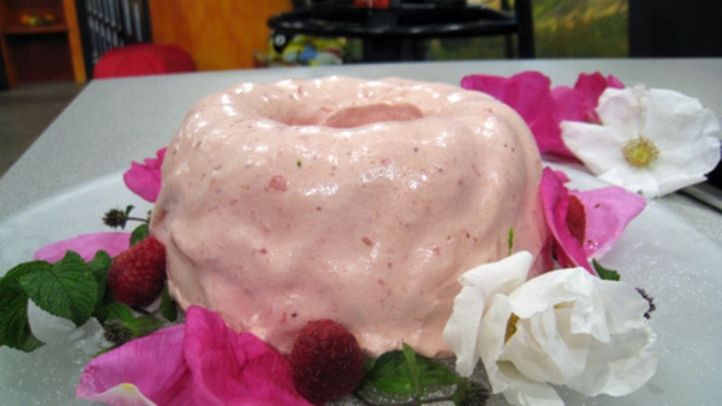 Ota jäädyke pakastimesta 20 minuuttia ennen tarjoamista. Kasta vuoka kylmään veteen hetkeksi ja kopausta esimerkiksi leikkuulaudalle. Ripottele tarjoiluvadille hieman sokeria. Aseta jäädyke vadille ja koristele marjoilla.