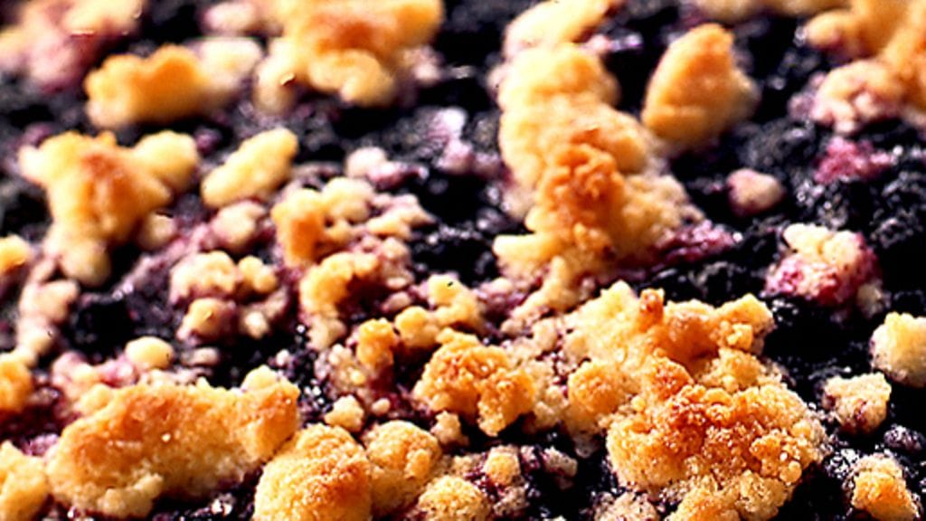 2. Voitele uuninkestävä vuoka ja lisää marjat vuokaan. Ripottele päälle sokeri ja perunajauhot, jaa murutaikina päälle ja paista 15-20 minuuttia. Tarjoile kevyesti vatkatun kerman tai vaniljakastikkeen kera.