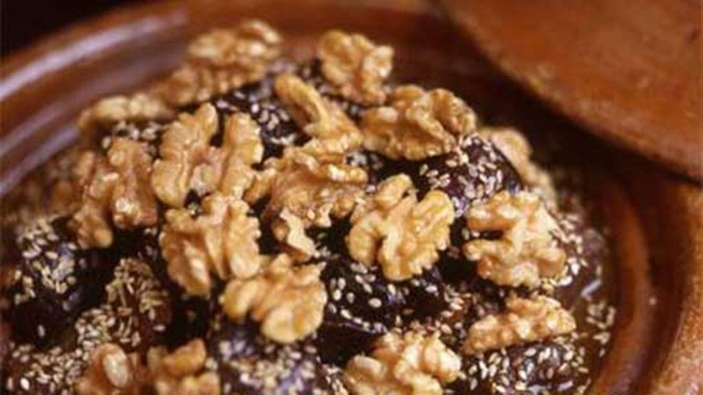 Kun ruoka vielä kruunataan pähkinöillä, voisi yhtä hyvin kuvitella olevansa paikan päällä Marokossa.
