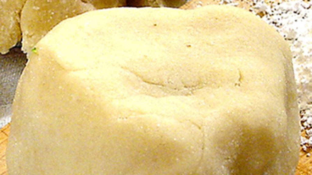2. Anna taikinan jäähtyä täysin, työstä siihen mantelimassa ja tomusokeri.
