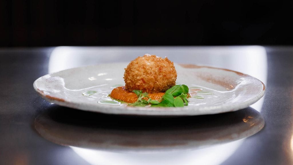 Vatkaa kauhalla parmesaani ja voi joukkoon. Viilennä massa. Muotoile risotosta palloja, ja laita pakkaseen hetkeksi jäähtymään.