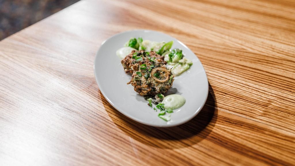 4. Pilko kesäkurpitsa tasaiseksi suikaleeksi. Pyöritä ne kananmunassa ja vehnäjauhoissa. Uppopaista kuumassa öljyssä.