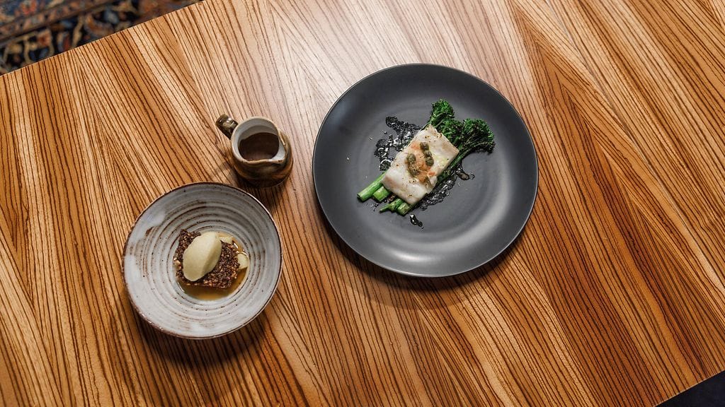 Mehusta omenat ja lisää glukoosisiirappia ja sokeria niin että sokeripitoisuus on vähintään 20%. Kaada seos kylmänä jäätelökoneeseen ja pyöritä sorbetiksi. Laita pakkaseen. Tee hasselpähkinäcrispi sekoittamalla aineet ja paahtamalla uunissa rapeaksi. Anna jäähtyä huoneenlämmössä.