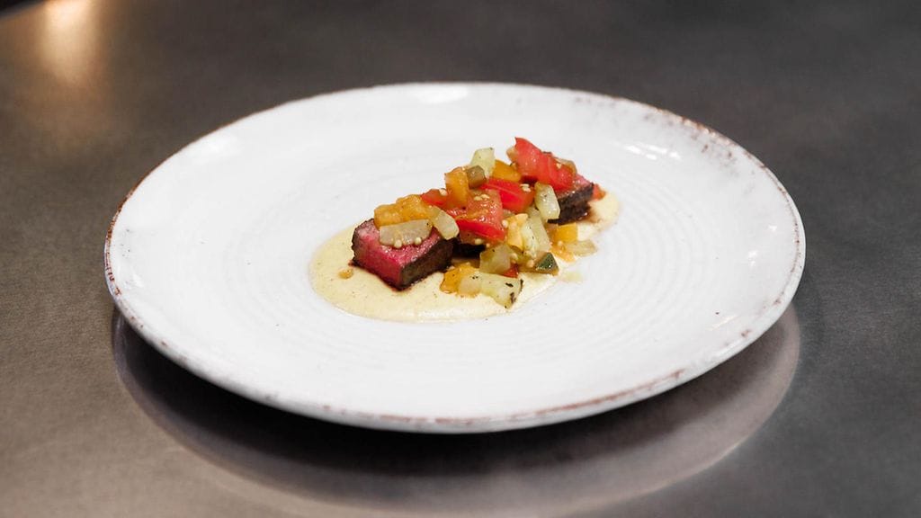 Mausta liha suolalla ja mustapippurilla. Grillaa lihaan hyvä väri molemmin puolin. Siirrä folioon ja Laita kääritty liha epäsuoralle tulelle tai uuniin paistolämpömittarin kanssa. Ota liha pois kun paistolämpömittari näyttää 52 astetta. Anna lihan levätä foliossa pihvin paksuudesta riippuen 10-30 min. Leikkaa liha annospaloiksi juuri ennen lautaselle asettelua ja mausta vielä sormisuolalla.