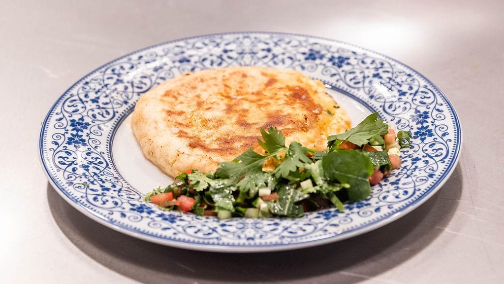 Jaa taikina neljään osaan ja kaulitse pyöreiksi letuiksi laita juustotäytettä keskelle jätä reunoille tilaa ja käännä ne täytteen päälle, nipistä taikina kiinni. Paista kuumalla pannulla molemmilta puolilta kunnes pinta saa väriä. Valele lopuksi voi sulalla.