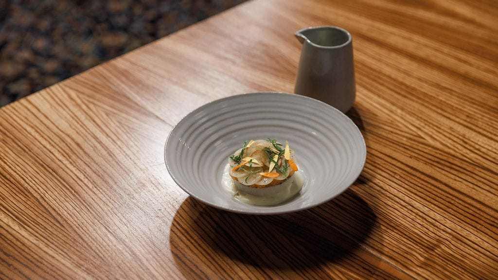 Mittaa beurre blanc kastikkeen ainekset kattilaan ja kuumenna. Emulgoi sauvasekoitinta käyttämällä.
