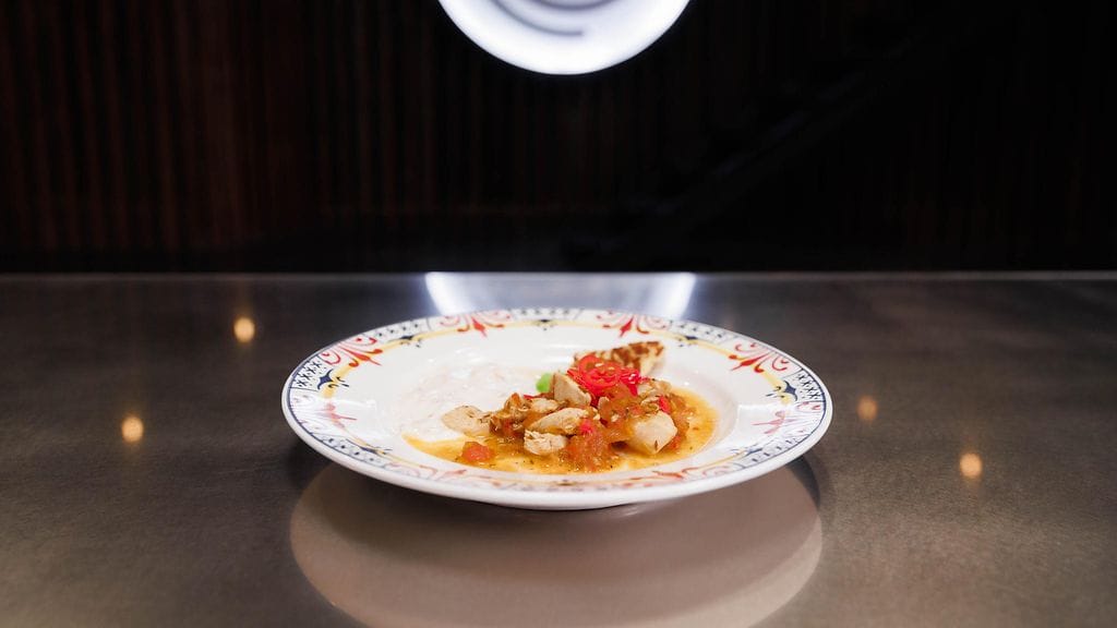 Leikkaa broilerista lihat ja pilko kuutioiksi.