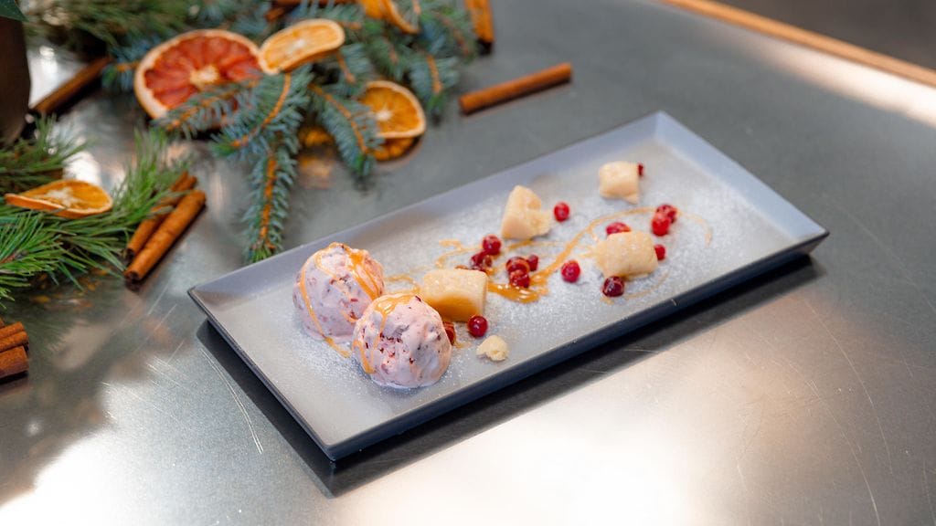 Karpalojäätelö: Vaahdota kuohukerma. Sekoita keltuaiset, sokeri, vaniljatangon sisus ja kondensoitu maito. Sekoita kermavaahto varovasti keltuaisseoksen sekaan. Lisää murskattuja karpaloita seokseen ja oman maun mukaan kuivattuja karpaloita. Laita seos noin 15 min ajaksi jäätelökoneeseen, jonka jälkeen siirrä jäätelö vuokaan ja pakastimeen.