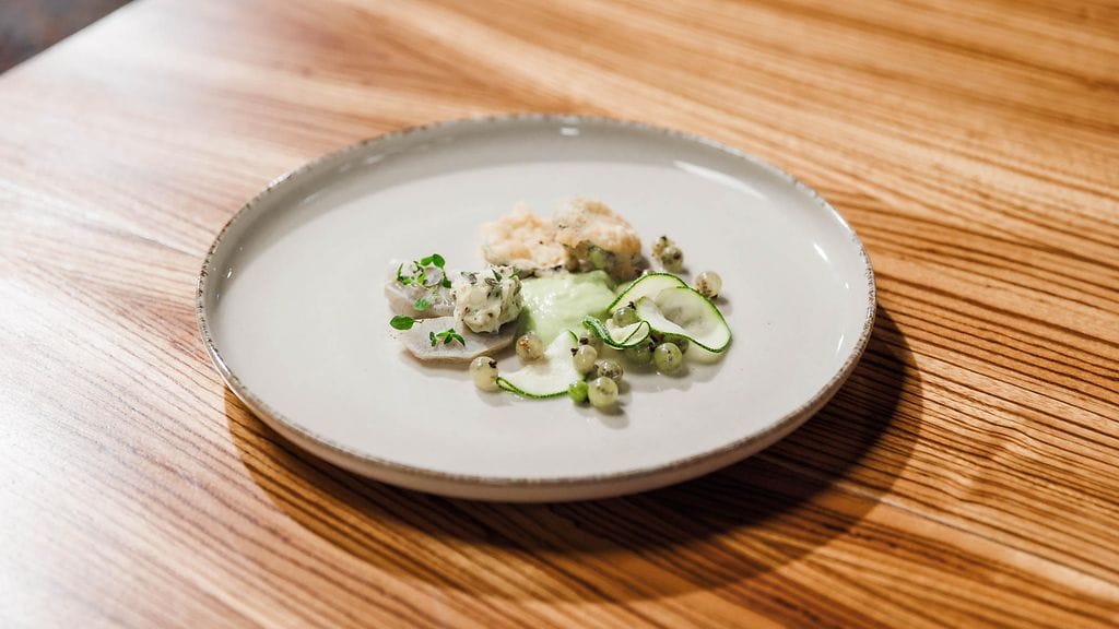 2. Keitä pikkelöintiliemi (1 osa etikkaa, 2 osaa sokeria ja 3 osaa vettä) kattilassa ja kaada erittäin ohuiden kesäkurpitsaviipaleiden sekä herukoiden päälle. Mausta pippurilla ja suolalla.