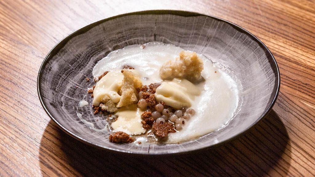 Kiehauta 180 g kermaa ja kaada valkosuklaan päälle. Sekoita niin että suklaa sulaa. Jäähdytä ja lisää sekaan valkuaiset. Kypsennä sifonissa 60 asteessa n. 45 minuuttia.