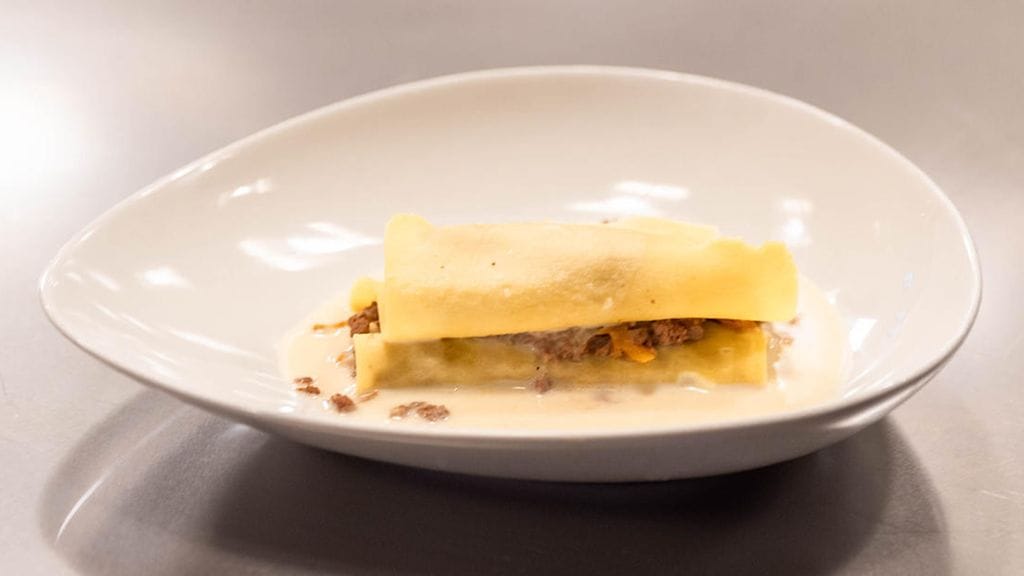 Laita pastalevy lautasen pohjalle ja täyty kerroksittain täytteillä. Käännä pastalevysta aina uusi kerros s- mallisesti.