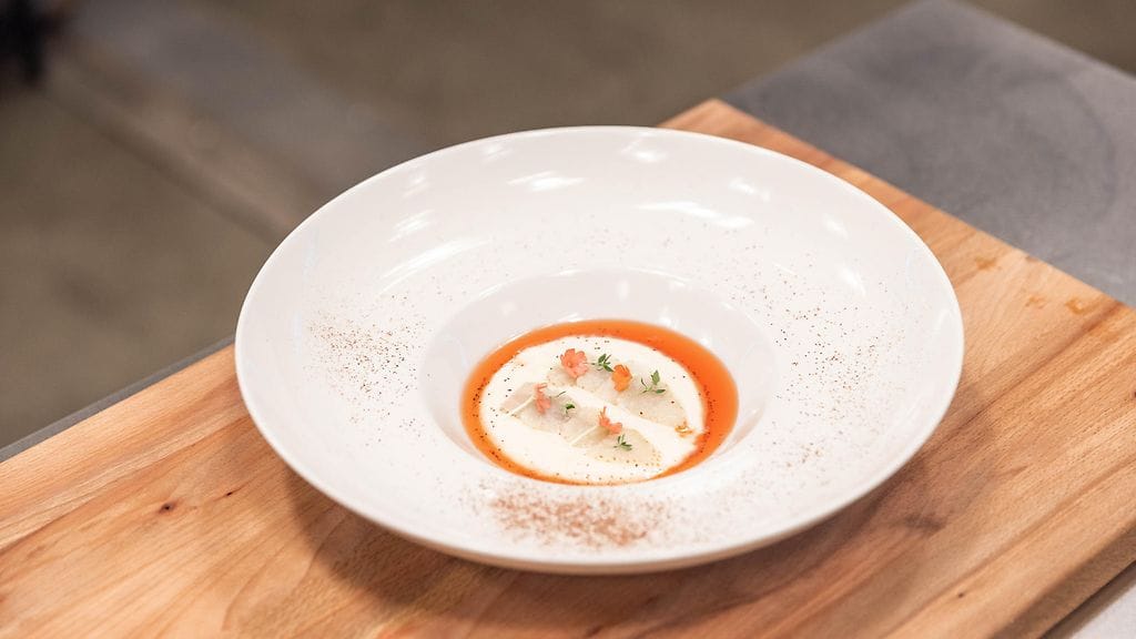 Annostele lautaselle ja koristele kukilla ja mikroyrteillä.