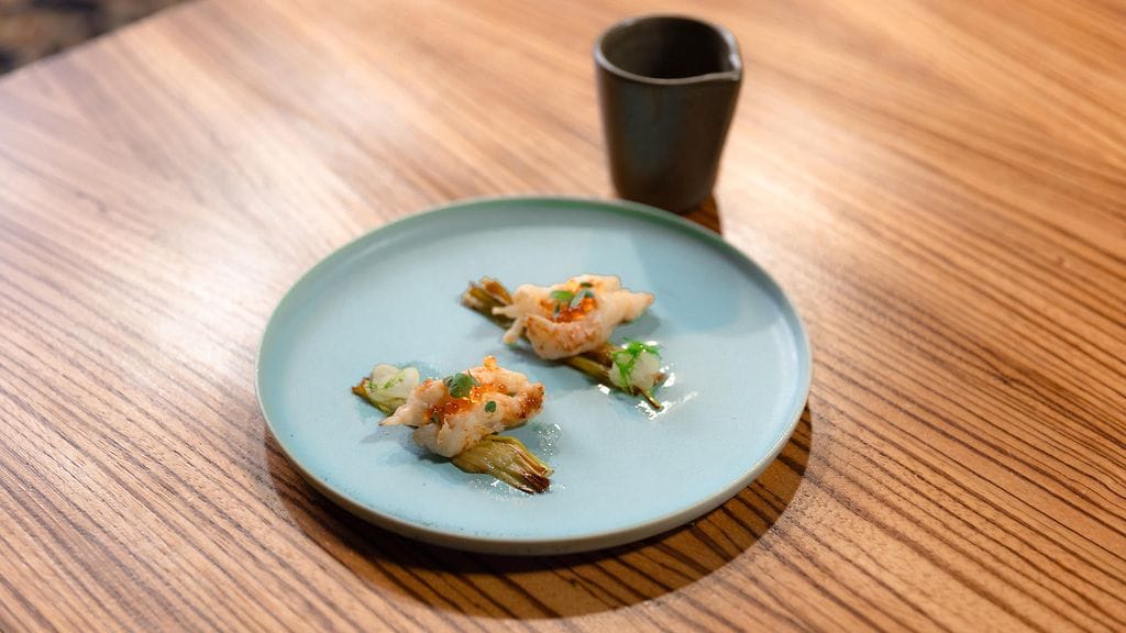 Merirapua, rapuliemi, mäti, karamellisoitu purjo ja pikkelöity fenkoli: