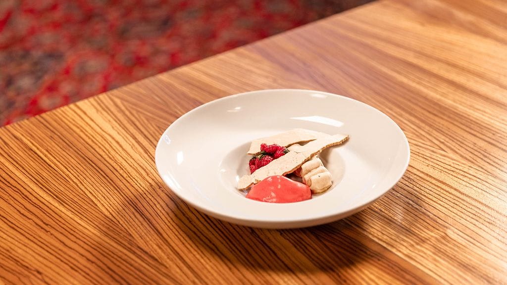 MARINOIDUT VADELMAT: Sekoita tahna ja lisää vadelmat. Anna marinoitua 30min.