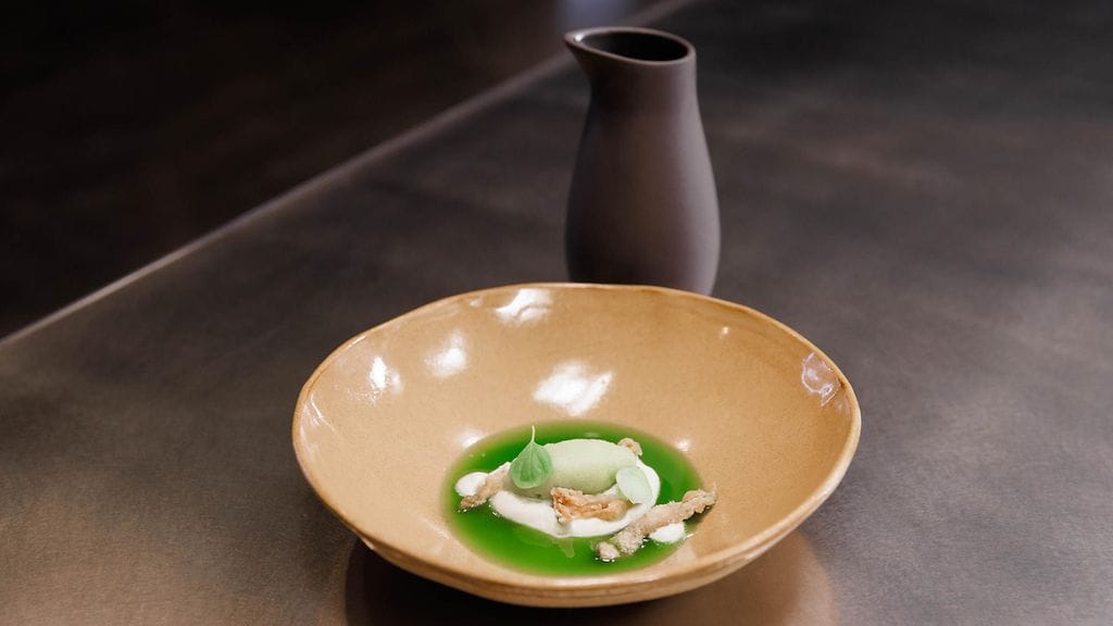 Aja aurajuusto tasaiseksi massaksi kutterissa. Vatkaa kerma kiinteäksi, mutta ei vaahdoksi ja lisää auratahna sekaan. Halutessasi voit laitta massan sifoniin valmiiksi tarjoilua varten.