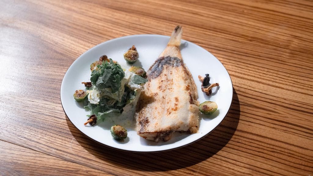 - Leikkaa merianturan pää pois. Poista tämän jälkeen toinen tummempi nahka. Laita hieman vettä kiehumaan kattilaan, uita pyrstön pää kiehuvaan veteen noin 10 sekunniksi. Laita kala leikkuulaudalle ja ja nylje nahka aloittaen keitetystä pyrstöstä. Kun tummempi nahka on poistettu suolaa kala molemmin puolin ja ripottele vehnäjauhoa päälle. Paista pannulla oliiviöljyssä ensin toinen puoli. Kun nahka on saanut värin pintaan vaihda toiselle puolelle. Ota lämpöä alas ja lisää pannulle voita. Valele kalaa voilla kunnes oikean kypsyys on haluttu.