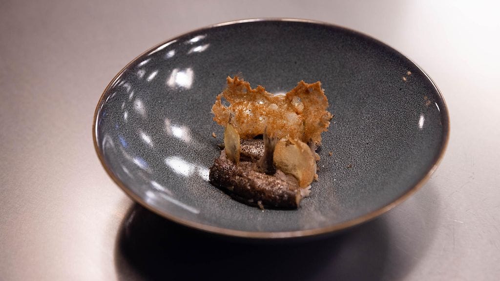 Leikkaa 2 perunaa mandoliinilla ohuiksi sipseiksi, huuhtele pois tärkkelys ja kuivaa. Frittaa perunat 180 asteisessa öljyssä kunnes ne saavat väriä. kaada ritilälle jäähtymään.
