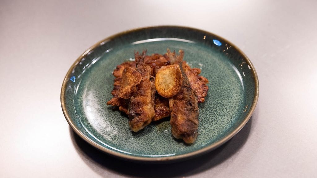 Laita muikut kulhoon ja lisää suolaa sekä sokeria. Anna suolaantua 15min. Leikkaa pyrstöt pois ja aseta erilleen muusta kalasta.