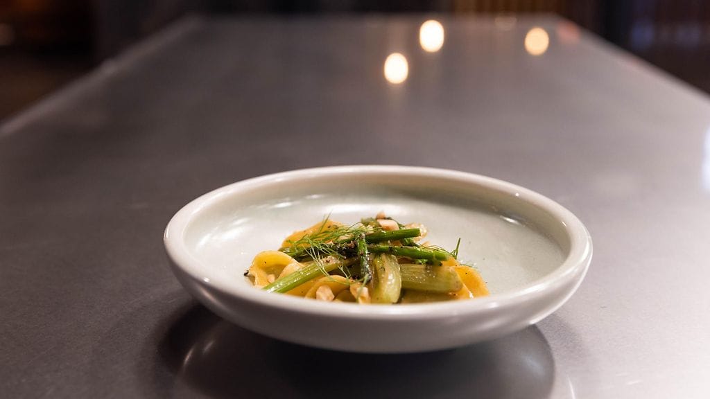 Paista fenkolia voissa ja lisää parsat pannulle.