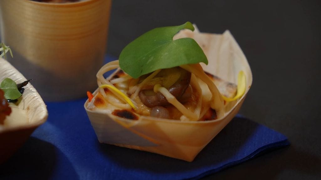 Laita uuni kuumenemaan 185 asteeseen ja vesi keittymään. Kuori perunat ja leikkaa puoliksi. Laita kiehumaan. Leikkaa herkkusienet neljään osaan ja paahda uunissa n. 20 min.