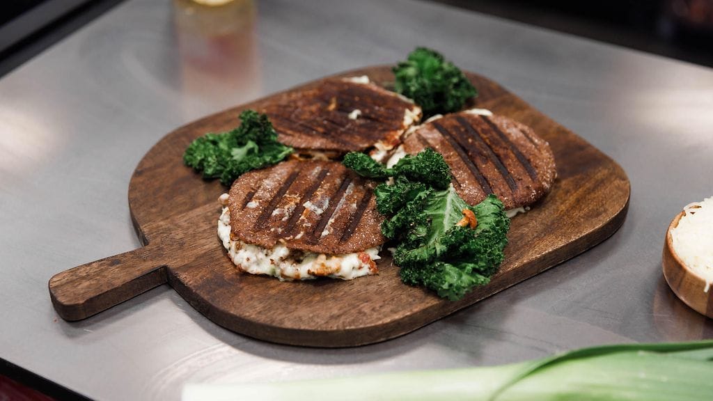 Pilko pieneksi purjo ja kuullota voissa kunnes purjo hieman pehmenee. Lisää hunaja. Lisää mascarpone sekä tuorejuusto ja sekoita pannulla tahnamaiseksi. Mausta suolalla.