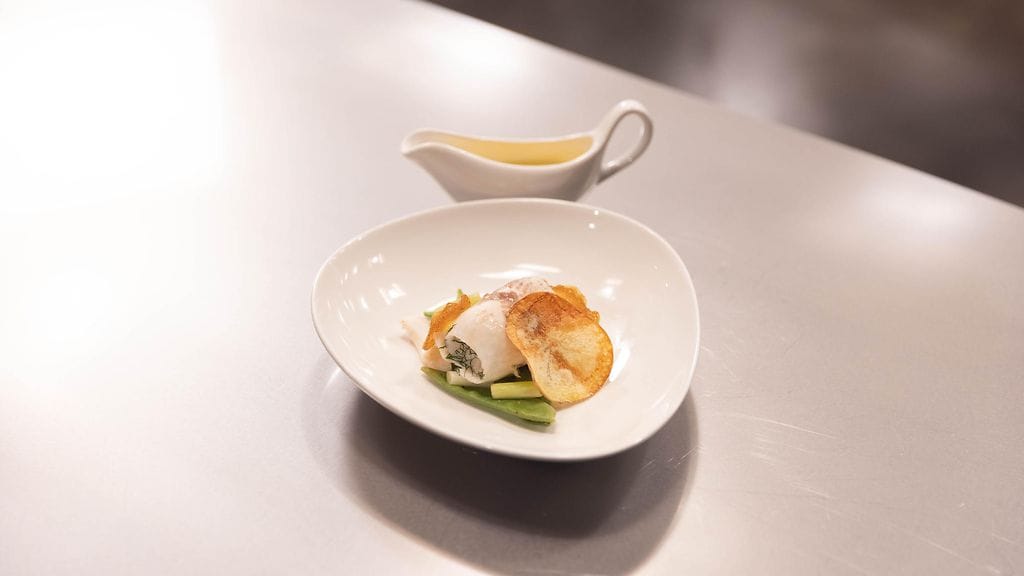 Valmista kalaliemi: laita kattilaan öljyä ja voita. Pilko sekaan 2 shalottisipulia ja kaksi valkosipulin kynttä ja kuullota. Mausta suolalla. Murskaa kokonaisia mustapippureita ja lisää. Pilko pesty purjo sekä porkkana ja lisää. Laita sekaan myös muutama oksa timjamia ja tilliä. Lisää ruokalusikallinen valkoviinietikkaa ja anna keittyä hetki. Lisää 1,5l vettä ja anna keittyä 25 minuuttia. Siivilöi carita-liinan läpi toiseen astiaan ja varmista, että kalanruodosta ja kasviksistakin tulevat kaikki mehut talteen.