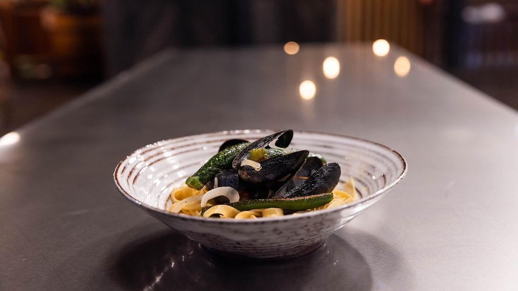 Nosta valmis pasta pannulle ruskistettuun voihin, lisää simpukoiden lientä, vähän lisää valkkaria ja heiluttele kokoajan. lisää muutama rkl pastan keitinvettä ja lisää parmesaani joukkoon
