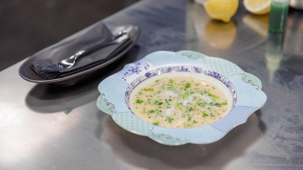 Lisää kauhallinen kanalientä kokoajan sekoittaen ja anna imeytyä. Toista niin kauan kunnes riisin rakenne on hyvä. Lisää lopuksi voi, parmesaani sekä mascarpone ja tarkista suola. Lisää ruohosipuli päälle.