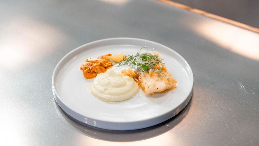Poista turskasta nahka ja tarkista ettei ole ruotoja. Mausta kala suolalla ja mustapippurilla ja laita jääkaappiin maustumaan. Valmista 1-2-3 liemi. 1 osa etikkaa, 2 osaa sokeria, 3 vettä. Kun liemi on kiehunut, nosta hellalta pois. Leikkaa vihannekset mandoliinilla ohuiksi siivuiksi ja lisää liemeen maustumaan.
