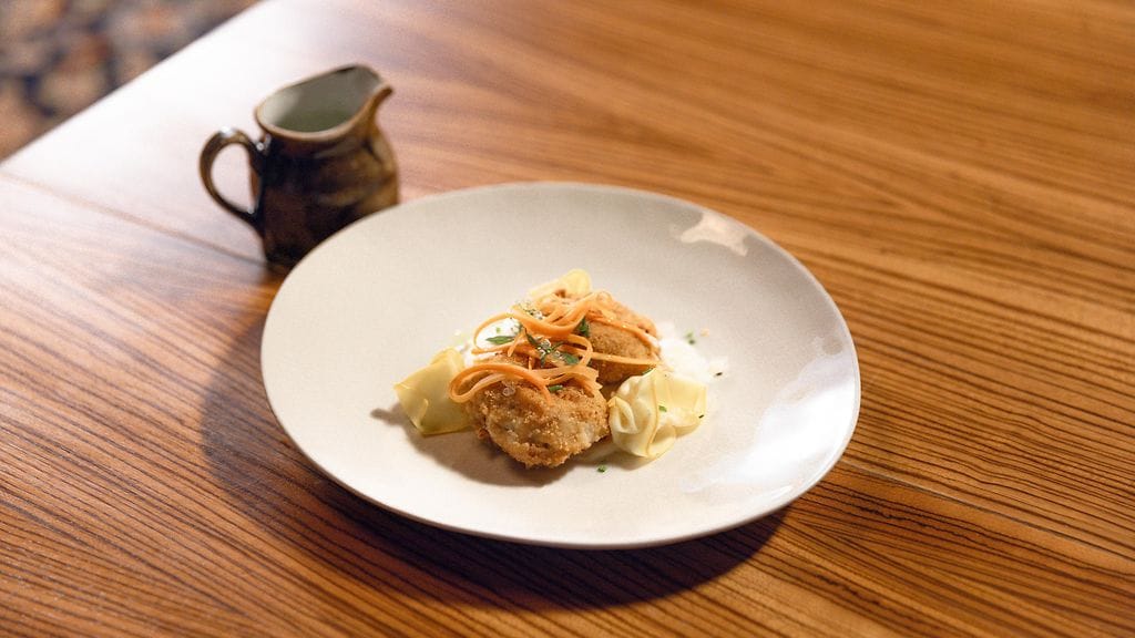 PIKKELÖIDYT KASVIKSET: Siivuta porkkana ja kesäkurpitsa julienne tyyliin. Laita pikkelöintiliemeen.