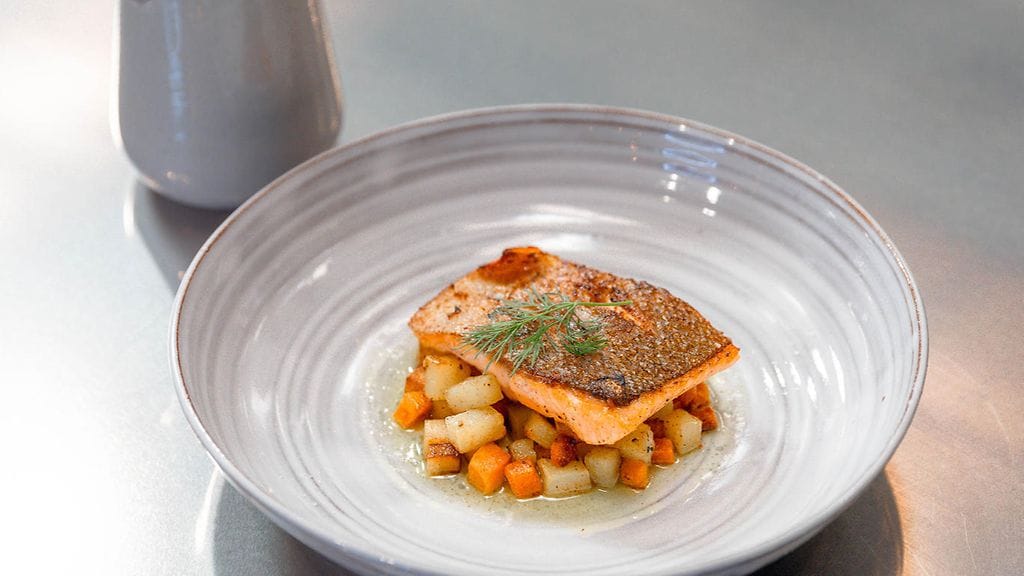 Kuori ja kuutioi pieniksi tasareunaisiksi nopiksi 2 perunaa, porkkana ja palsternakka. Ota talteen reunapalat. Pyöritä oliiviöljyssä, mausta suolalla ja mustapippurilla. Levitä pellille ja laita uuniin 225 c noin 20 minuuttia.
