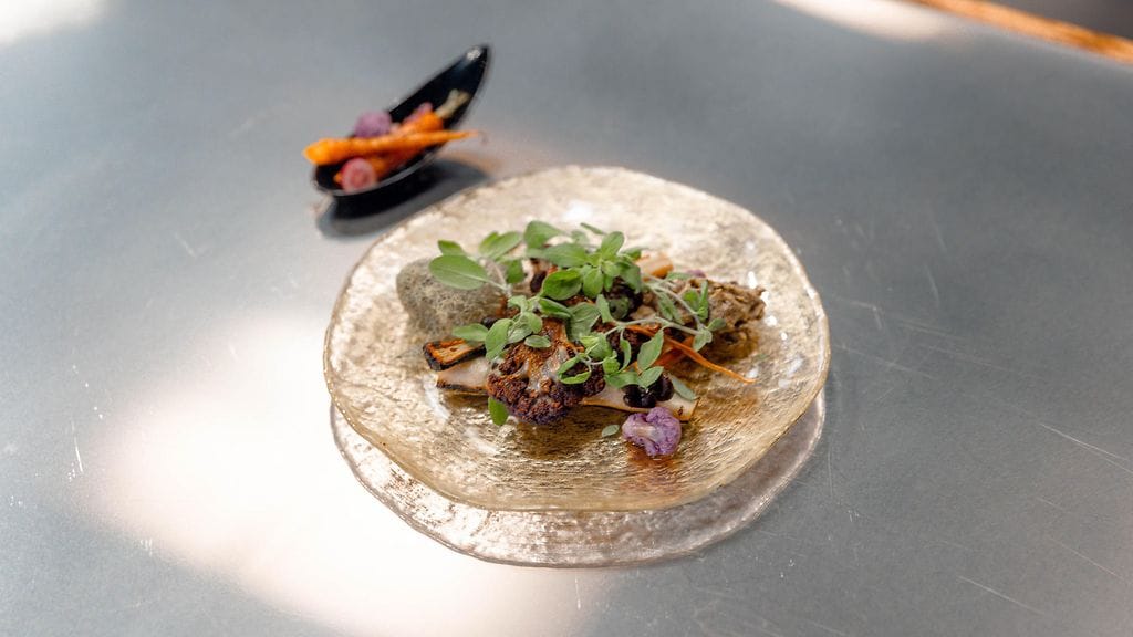 AMUSE BOUCHE: Leikkaa retiisi hyvin ohuiksi viipaleiksi. Marinoi oliiviöljyllä, suolalla ja pippurilla. Lisää pannulle voi ja pikkuporkkanat. Mausta suolalla, pippurilla ja timjamilla. Kasaa annos pieneen astiaan.