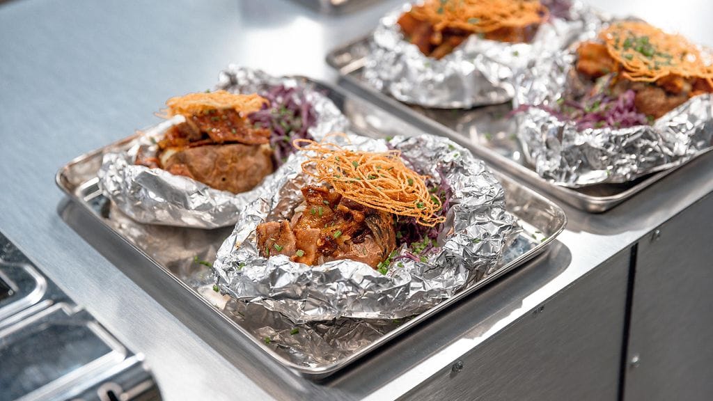 UUNIPERUNA: Kastele perunat, ja pistele muutama reikä kuoreen. Laita perunat mikroon siihen asti, kunnes ne ovat kypsiä – noin 20 minuuttia. Laita lopuksi grillivastukselle uuniin, jotta saat rapean pinnan. Kun perunat ovat valmiita, tee viilto pitkittäissuunnassa perunaan ja kaavi sisus perunoista kulhoon. Lisää kulhoon voi ja juustot raasteena. Sekoita. Jaa massa perunankuorien sisään.