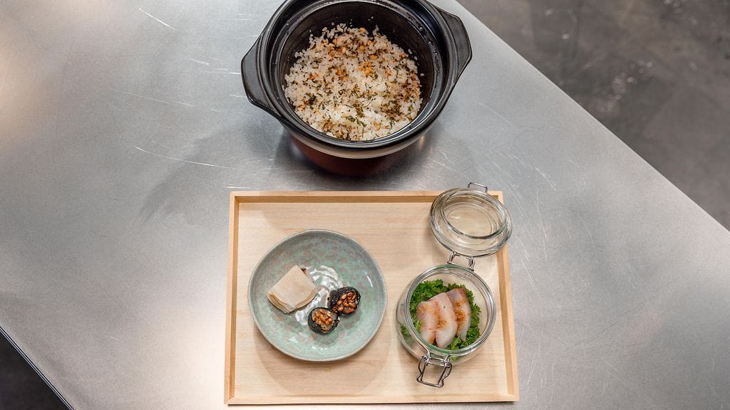Tee tahna mädistä, 1 tl savukurpitsasta, Tonin tomaateista ja reduktiosta. Pistä kampasimpukat purkkiin ja purista limen mehu päälle, jätä kypsymään. Laita noriarkin päälle maustetahnaa ja rullaa kampasimpukat levän sisään. Leikkaa reunat siisteiksi, purista vähän päälle lime mehua ja Tonin auringonkukan siemeniä.
