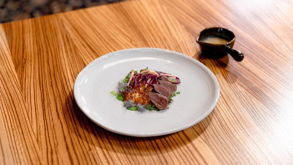 Irrota riekon koppa ja laita loppuosa rungosta kattilaan 3 rkl rypsiöljyn kanssa. Paista noin 5 min ja lisää sitten 2,5 dl kanalientä ja sekä pilkottu punainen omena ja keitä kasaan noin 10min. Lisää 2 dl kermaa, 1 kierros suolaa myllystä ja 1 kierros mustapippuria myllystä ja jätä kiehumaan keskilämmölle.