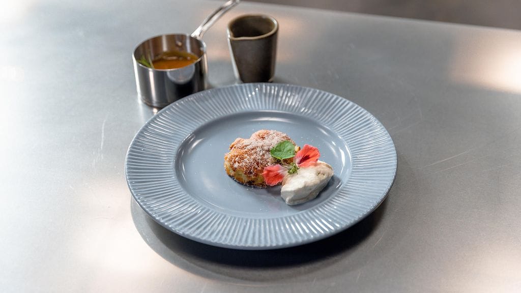 OMENARAPARPERIFRITTERI: Kuori omenat ja poista kota. Jos raparperissa on kuori, poista se. Raasta molemmat laatikkoraastimen karkeimmalla osalla. Riko munat kulhoon ja vatkaa rakenne rikki. Sekoita kaikki ainekset keskenään. Anna levätä 5 minuuttia. Nosta kauhalla pallo fritteriä 180 asteiseen öljyyn paista noin. 2 minuuttia per puoli, kunnes kauniin ruskea. Käännä ympäri ja paista toiset 2 minuuttia. Sekoita sokeri, kaneli ja suola lautaselle. Nosta fritteri kuorrutuslautaselle. Anna jäähtyä hetken, ja paina muotilla fritteristä kaunis tasainen ympyrä.