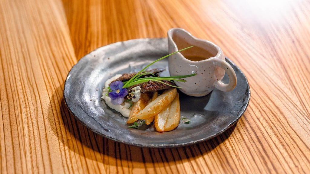 Pese ja leikkaa perunat pitkittäin kahdeksaan lohkoon, paista pannulla voin ja öljyn seoksessa hetki, laita perunalohkot uunivuokaan/pellille ja nosta pelti uuniin 180 asteeseen.