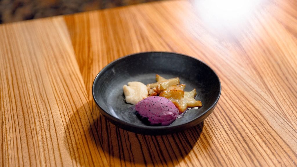 PITAHAYAJÄÄTELÖ: Puolita pitahaya ja kaavi sose astiaan, lisää sokeri ja maito. Soseuta tehosekoittimella kevyesti, varo ettei siemenet murskaannu. Lisää lopuksi kerma ja kaada seos jäätelökoneeseen. Anna pyöriä kunnes seos jähmettyy.