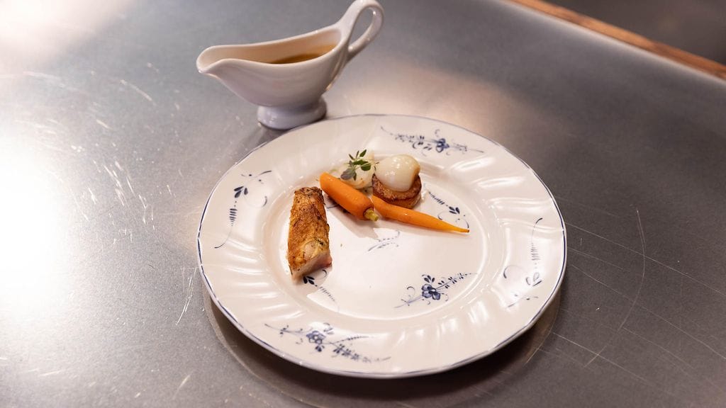 Aloita paloittelemalla kokonainen kana. Leikkaa niin, että otat reisipalat, siipipalat sekä rintalastan irti. Pilko yksi salottisipuli sekä valkosipuli. Laita kattilaan öljyyn kanssa ja ota kanan paloihin väriä. Kaada kasvislientä perään niin, että kanan siipipalat peittyvät. Laita rakuunaa ja timjamia joukkoon. Keitä kasaan. Siivilöi ja kaada eri kattilaan. Lisää joukkoon kerma ja mausta suolalla, pippurilla sekä sitruunan mehulla.